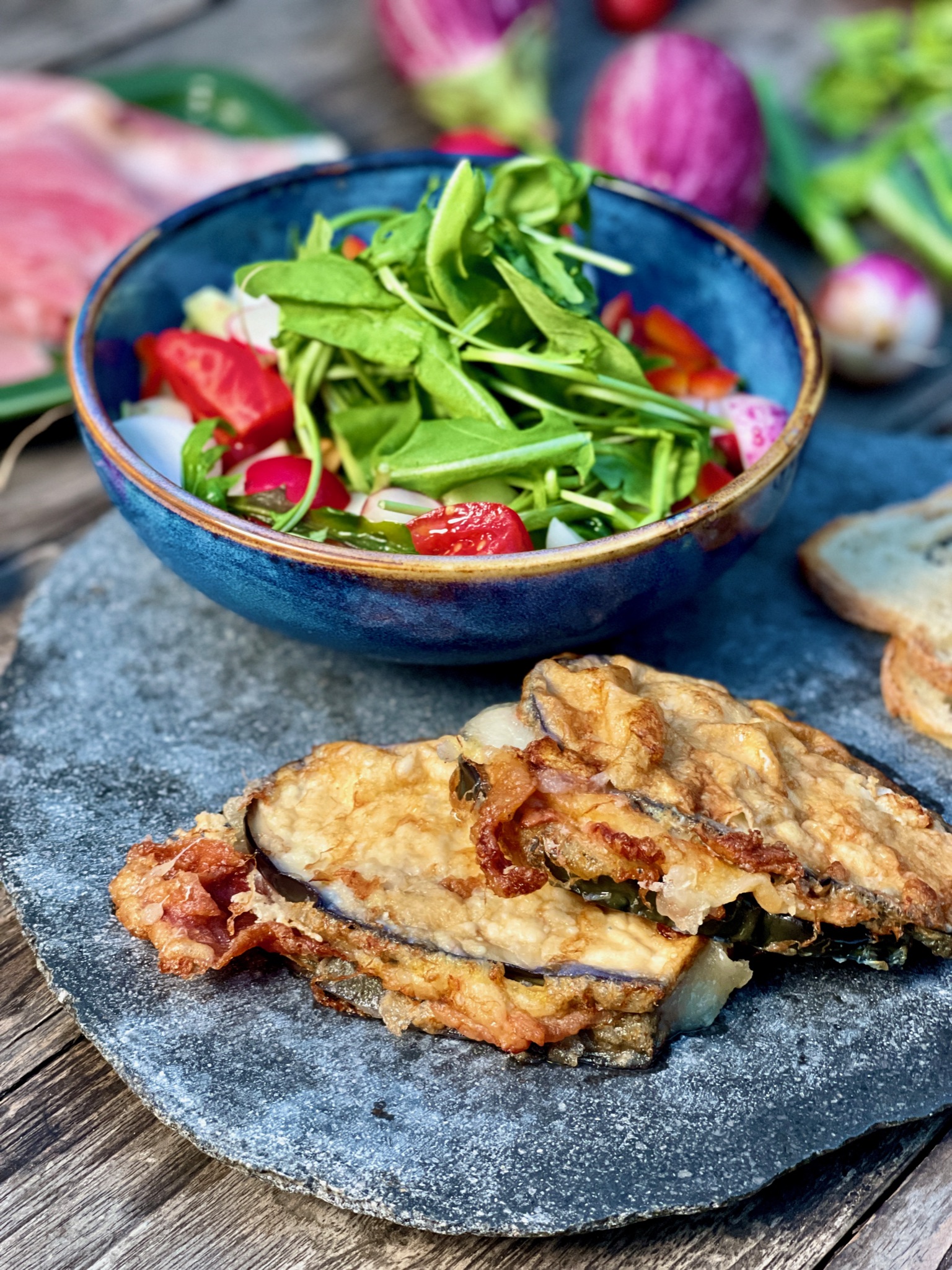 Paninazzi di melanzane fritte con mozzarella e prosciutto